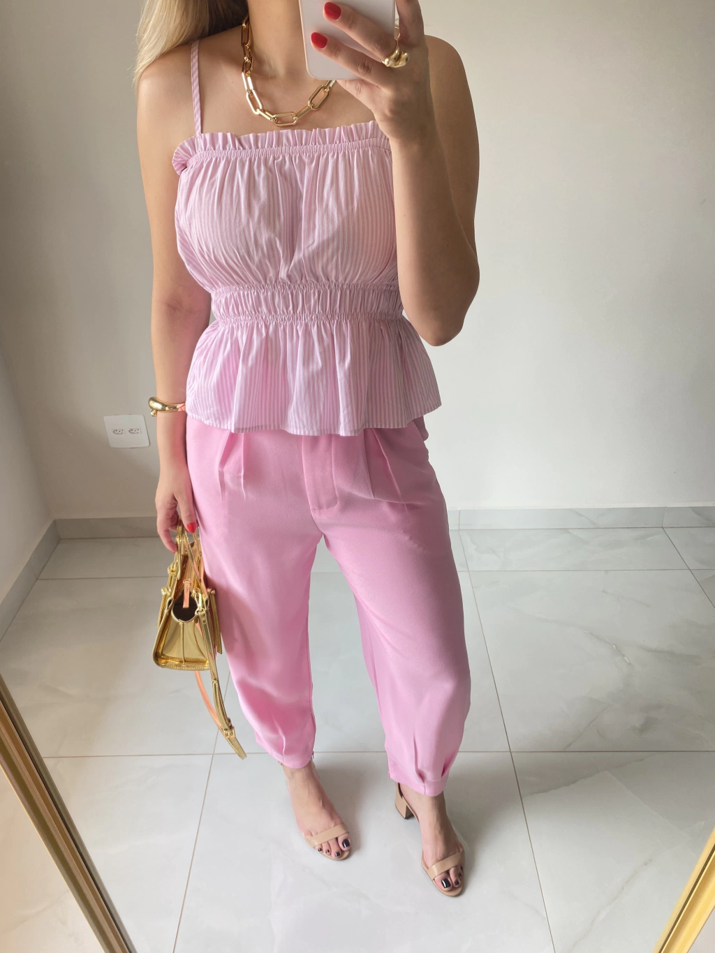 Blusa Bia, uma peça irresistível que combina conforto e estilo. Confeccionada em tricoline listrado rosa, essa blusa é perfeita para os dias quentes. Com alças reguláveis e um design com lastex na cintura, ela proporciona um ajuste leve e solto, ideal para compor looks descontraídos e elegantes.