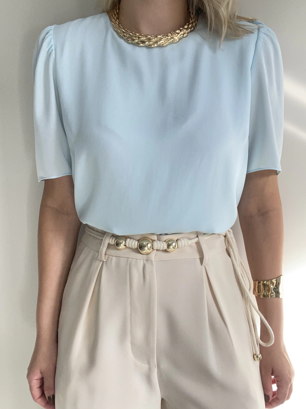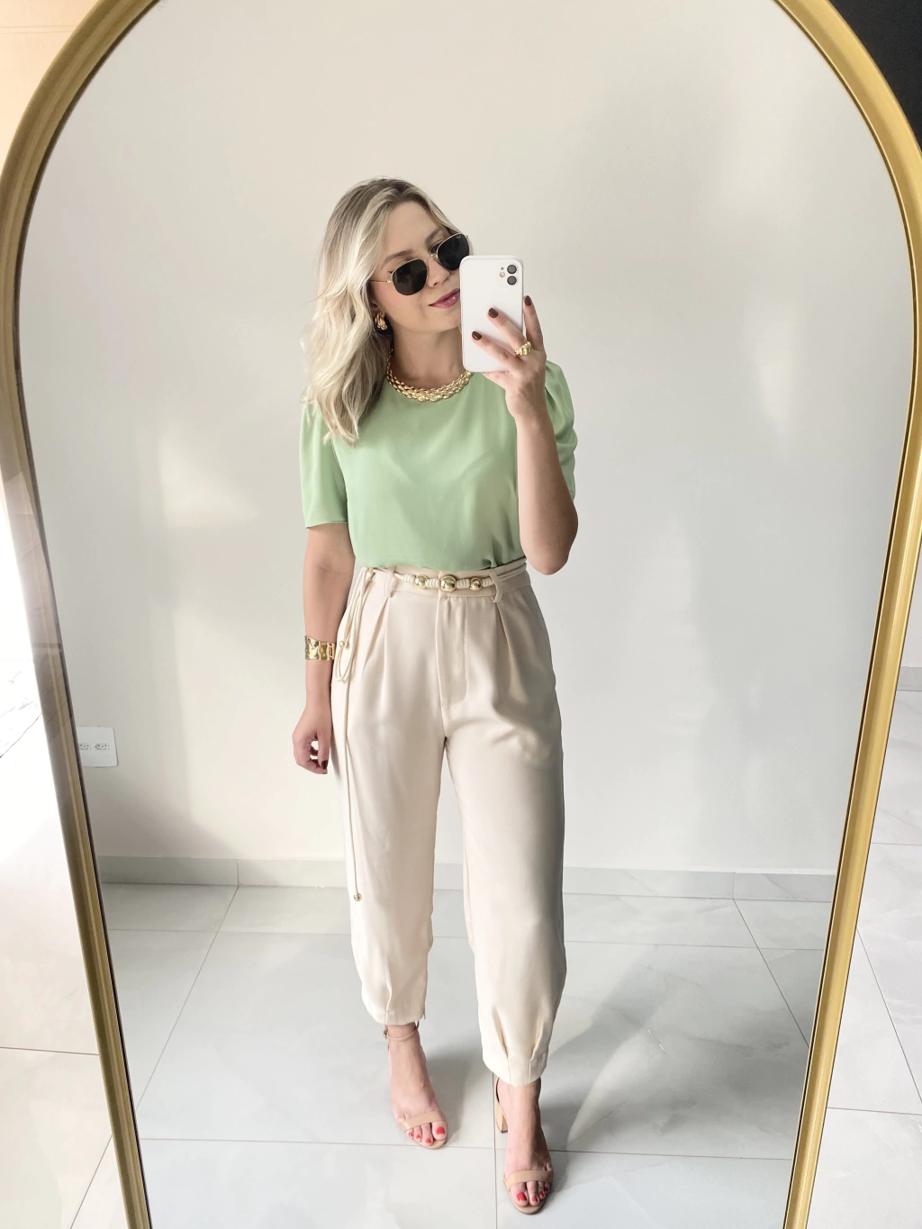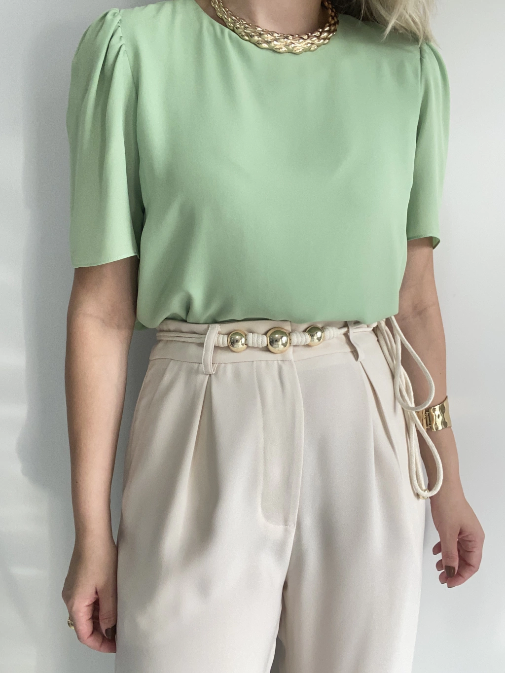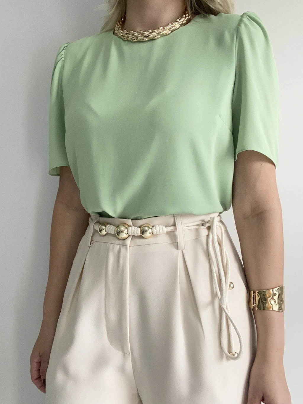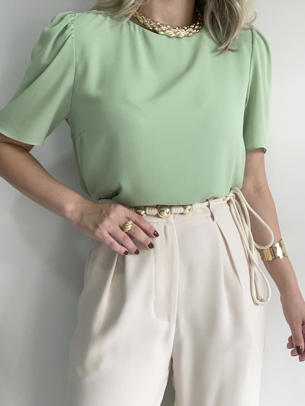 Uma peça sofisticada que combina elegância e conforto. Feita em tecido crepe, esta blusa possui manga com leve drapeado, com um caimento mais soltinho e fluido. Com tecido duplo na frente (para não ter transparência) e fechamento com botão dourado atrás, confere um toque especial e charmoso, tornando-a uma escolha perfeita para diversas ocasiões!