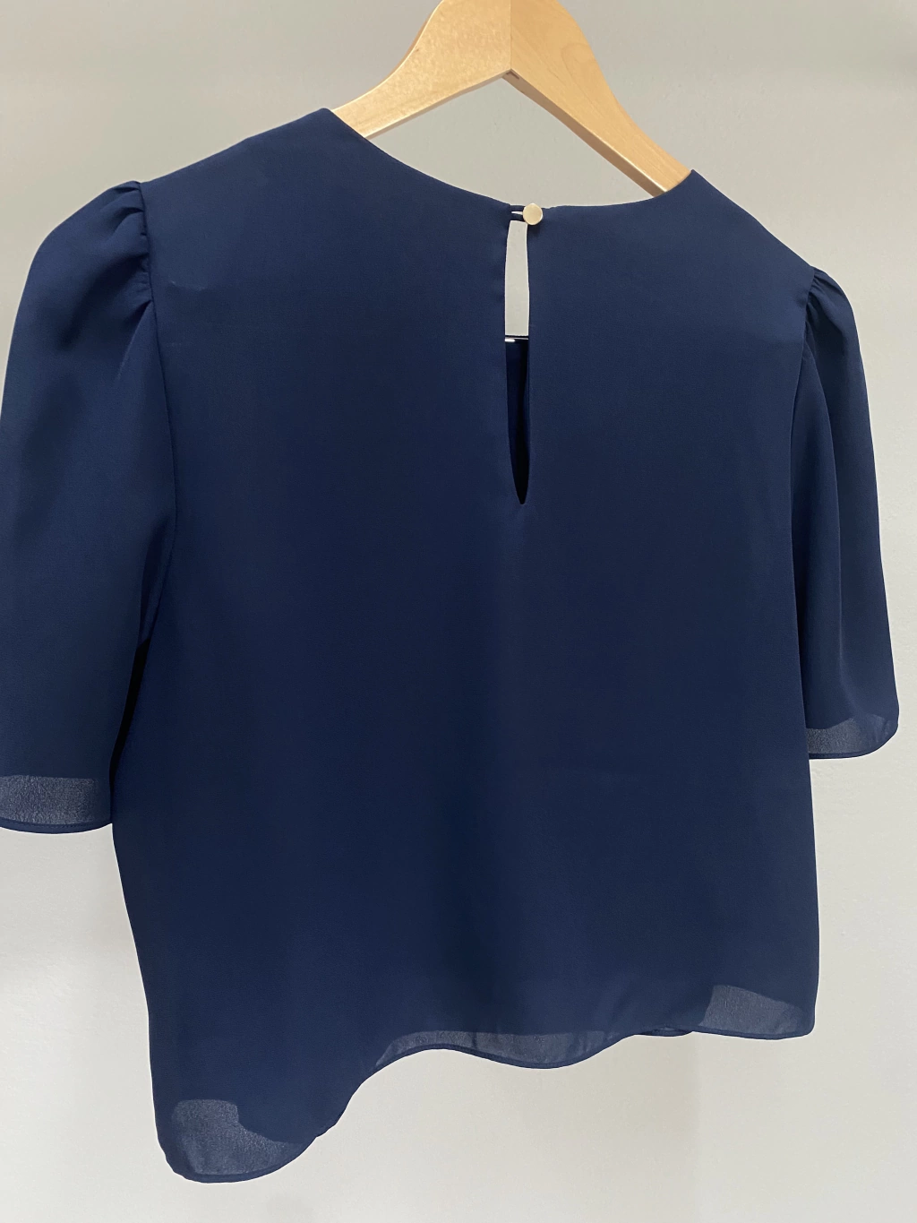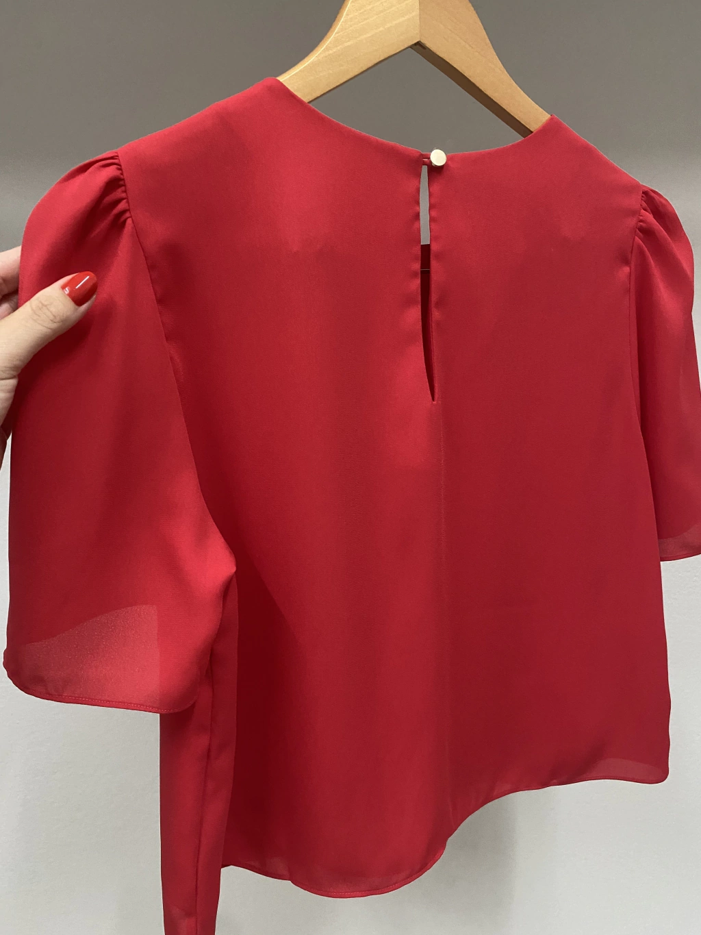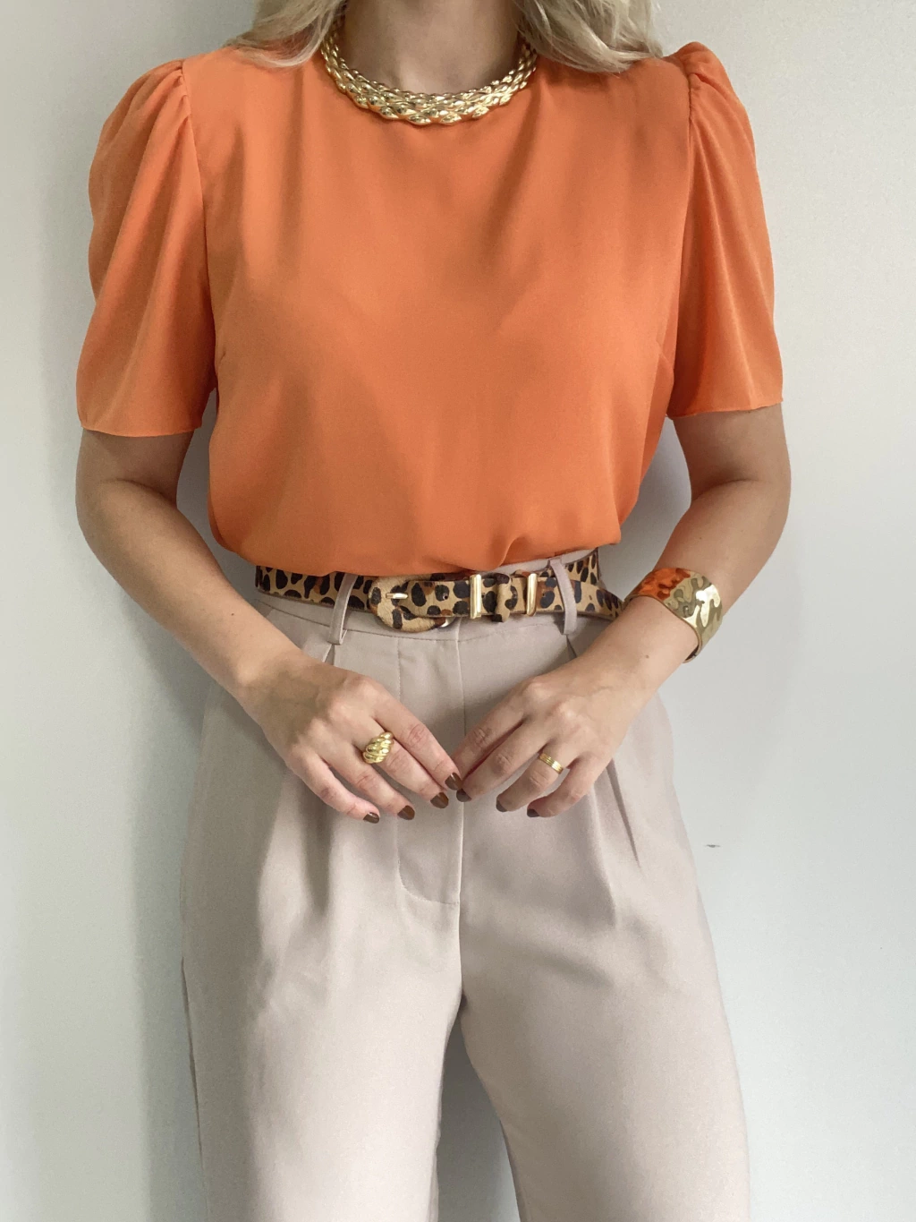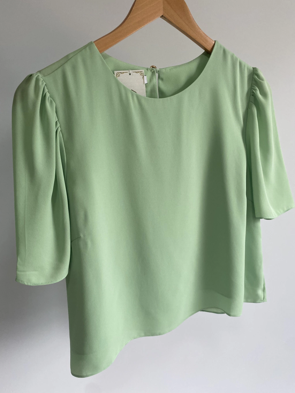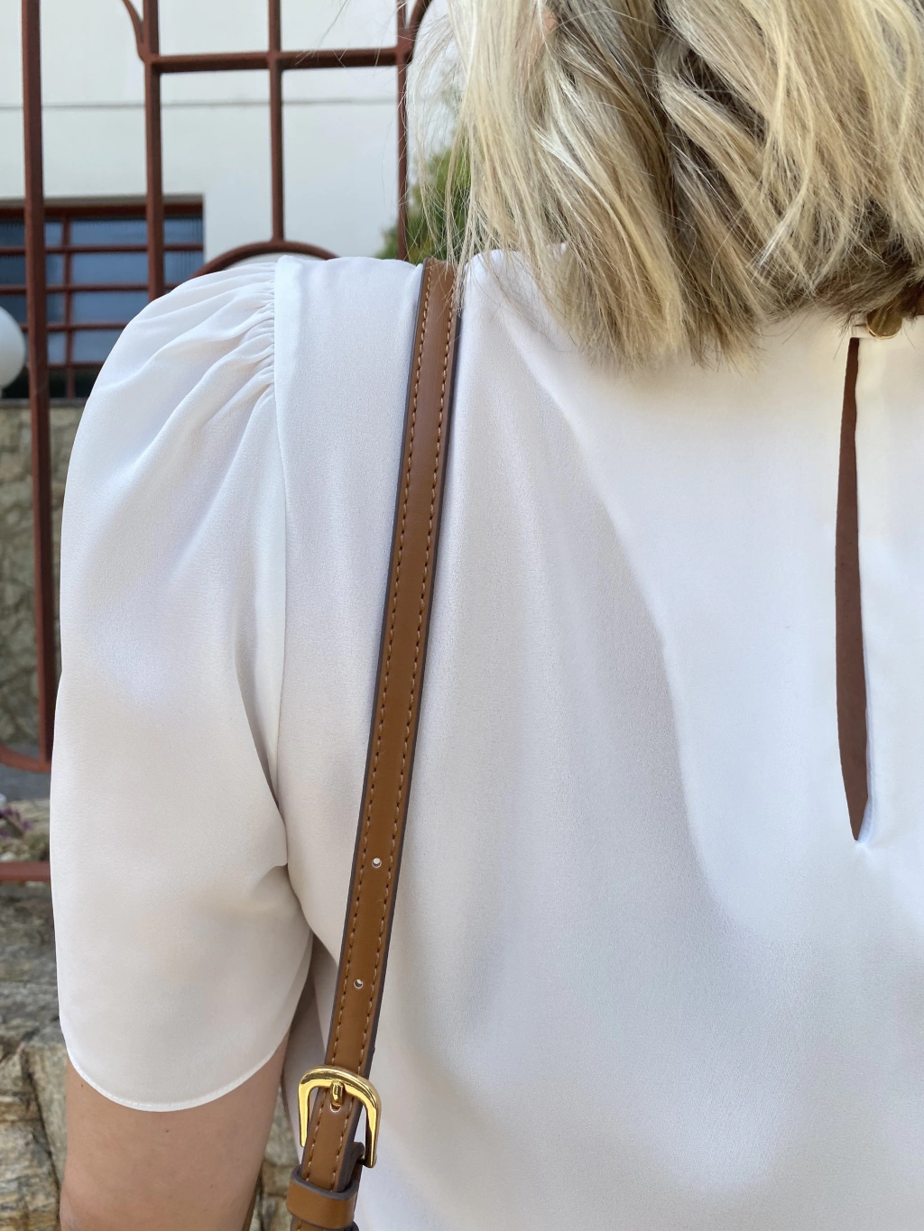 Uma peça sofisticada que combina elegância e conforto. Feita em tecido crepe, esta blusa possui manga com leve drapeado, com um caimento mais soltinho e fluido. Com tecido duplo na frente (para não ter transparência) e fechamento com botão dourado atrás, confere um toque especial e charmoso, tornando-a uma escolha perfeita para diversas ocasiões!