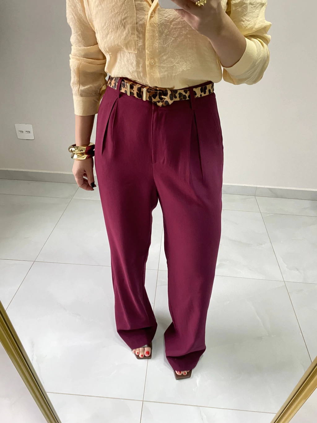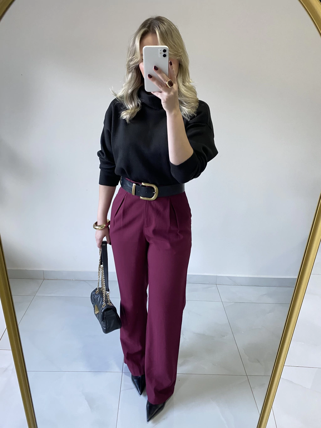 Calça Amanda, uma peça de alfaiataria sofisticada que combina conforto e estilo para qualquer ocasião. Feita em tecido Marrant, com modelagem reta e cintura alta, garante um caimento perfeito e valoriza a silhueta feminina.